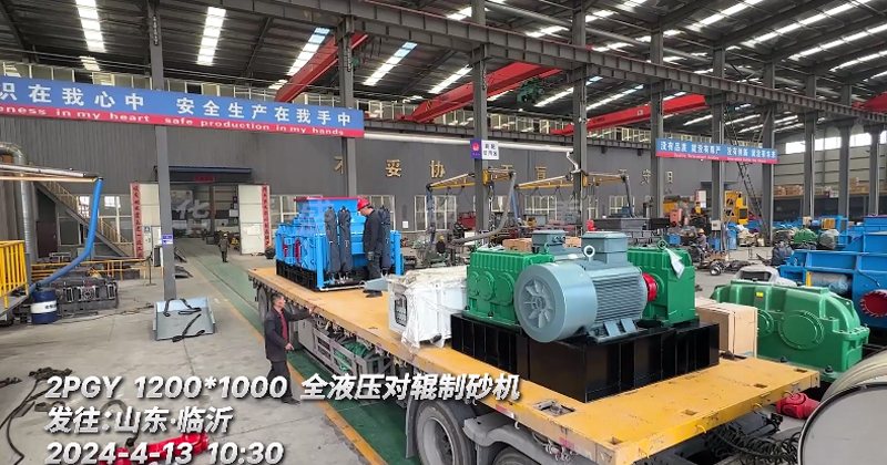 • 1200x1000型對(duì)輥制砂機(jī)發(fā)往:山東臨沂